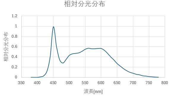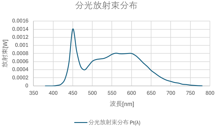 ここでは実際に分光器で測定した分光分布ではなく、LEDのカタログ値の全光束と