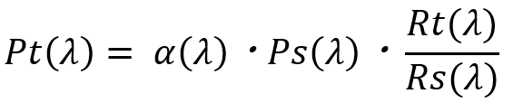 Rs(λ):全放射束標準ランプの分光器の読み値