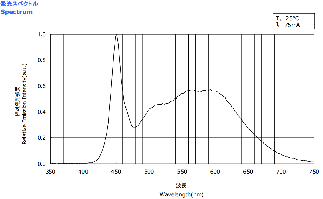 試料LEDは相対分光分布の図-5.1があるだけです。