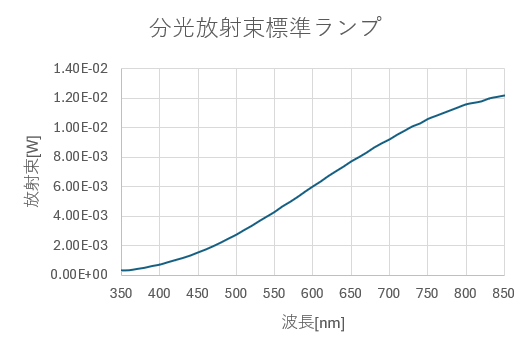 Ps(λ):全放射束標準ランプの分光分布(値付けされている値、単位:[W/nm]対[nm])