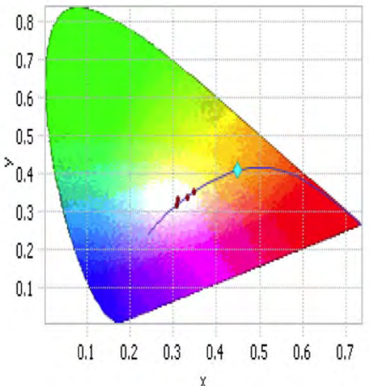 図-5.5 LEDの色度座標(黒丸の位置)