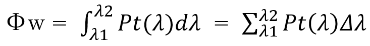 相対分光分布から放射束分布を逆算したのち、この放射束分布から、全放射束[W]、
