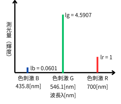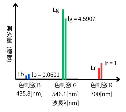 この時の原刺激のそれぞれの測光量(輝度)をlr、lg、lbとします。