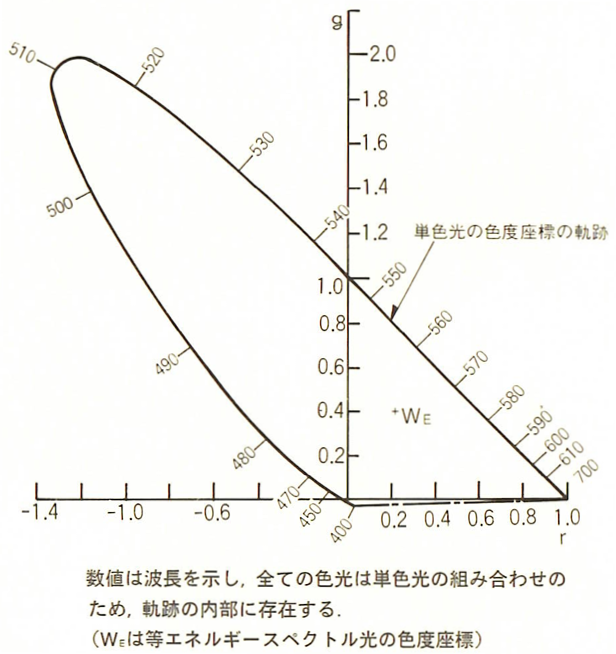 r, g, bは色光の強度の情報を持たず色だけの情報を表すため、色度座標