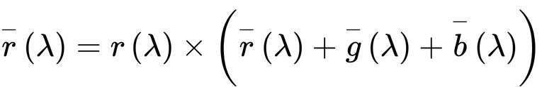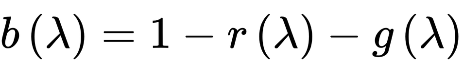 すべての波長で r(λ) + g(λ) + b(λ) = 1 です。