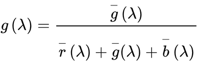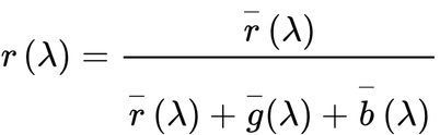 スペクトルの色度座標 をr(λ) g(λ) b(λ) とすると