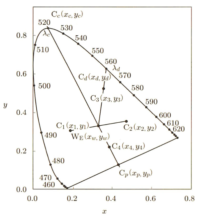 図-5.1 補色、主波長(ドミナント波長)、純度