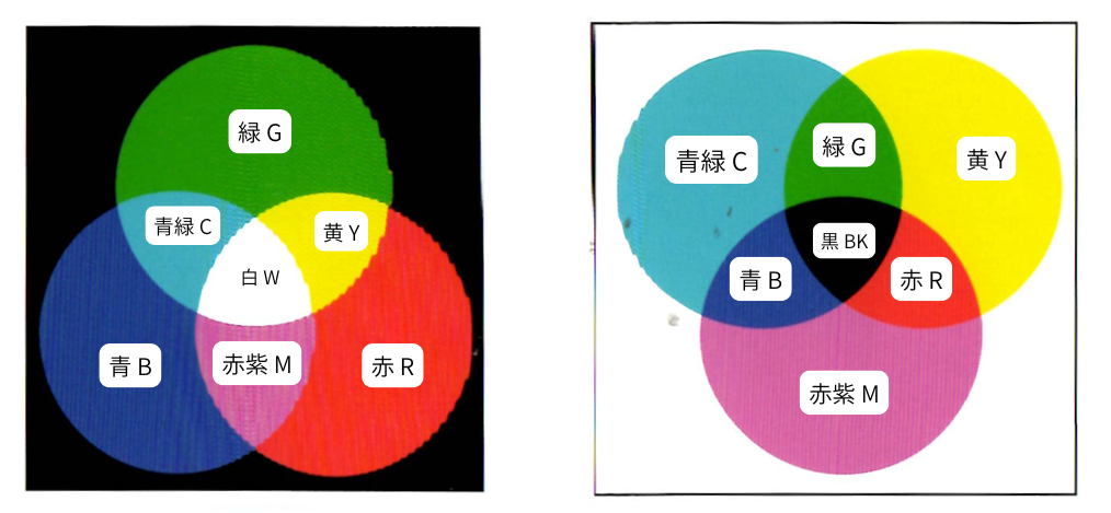 減法混色では光を引き算することで色を作ります。加法混色で白色を作る色の組み合わせが